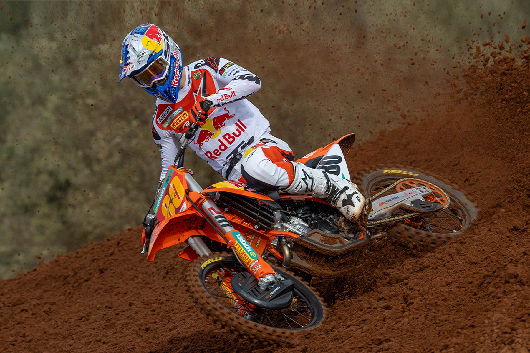 Die neueste Ausführung der KTM SX-F-Baureihe ist eine fortschrittliche technische Plattform, die die Grundlage der Ambitionen von Red Bull KTM Factory Racing auf den Meistertitel bildet. Das Potenzial der KTM SX-F steht außer Frage. Diese trägt die DNA zahlloser Siege, Podiumsplätze und Titel in den höchsten Klassen der Motocross- und Supercross-Wettbewerbe im letzten Jahrzehnt in sich.