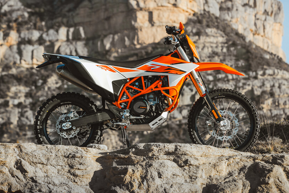 Die Dualsport- Version Enduro R erhält ein komplettes Restyling. Sie verfügt jetzt über ein 4,2-Zoll-TFT-Display, neue Lenkerblöcke, einen USB-C-Anschluss und einen Voll-LED-Scheinwerfer. Die Elektronik wurde mit Cornering ABS , Cornering MTC und der neuen Dynamic Slip Adjust (mit optionalem RALLY-Modus) aktualisiert, mit der Sie die Traktion in Echtzeit an das Gelände anpassen können. Der Euro 5+ LC4-Motor wurde überarbeitet, um Zuverlässigkeit und Leistung zu verbessern, mit Änderungen an Kurbelgehäuse, Kupplung, Statordeckel und Ölkreislauf.